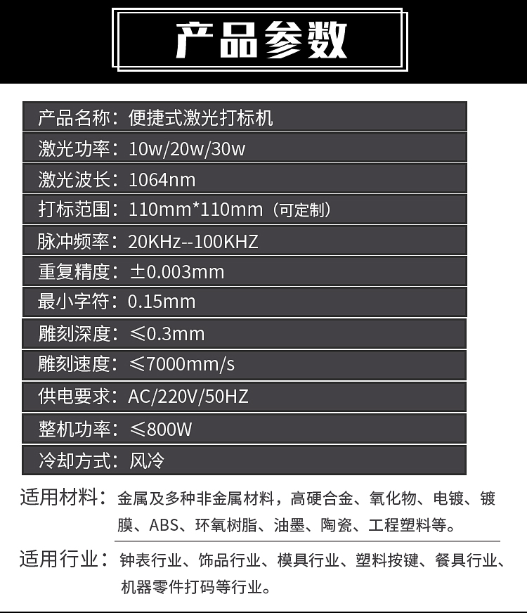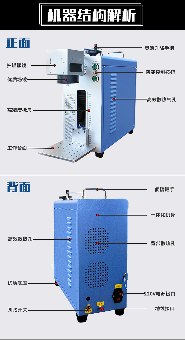 便攜式光纖激光打標機20w電子元件軸承銘牌不銹鋼金屬鐳射雕刻機
